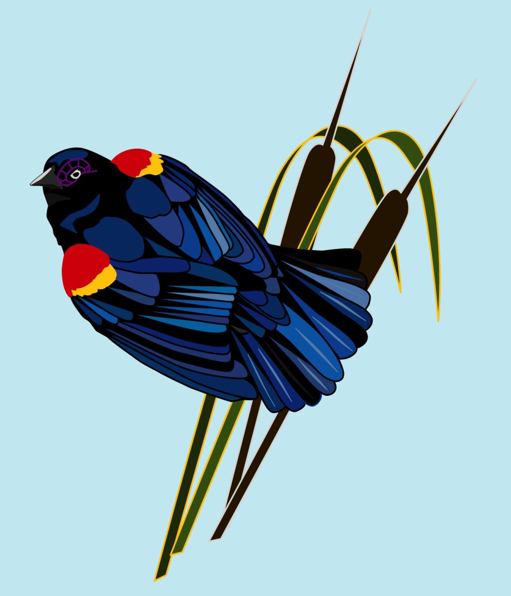 The first time I canoed into the gut I was introduced to Marsh Wrens. While exploring further into the reeds we kept seeing and hearing quick brown birds who just as quickly hid themselves away from sight. They perched, often sideways, on tall reeds with their tails impossibly erect… But when trying to get them in sight with binoculars they would just as quickly hide away in the brown reeds. As we paddled in closer we started to see their simple little nests. They apparently build multiple nests and use just one for roosting. The nests are oval balls with the opening on the side, carefully woven to cattails and vegetation. I was immediately captivated by these wrens. They sang constantly, and apparently do so even at night. Unlike my favorite Red Winged Black Birds, I had never before seen the Marsh Wren. To me, the song of the Red Winged Black Bird means summer – it lifts my heart to hear it… And now the Marsh Wren song means solitude, even mystery.
