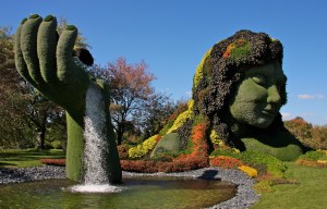 earth mother has an eagle landing behind the waterfall on her hand