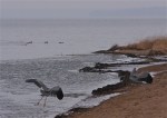 Ausable Point is not far from Valcour Island Bird Conservation Area, which is home to the largest great blue heron rookery in New York State. Once there is no longer open water from which to fish they will eventually migrate further south, or perhaps east toward the ocean. Since todays birds are still so close to the rookery they are likely to be some of the first to return to it in the spring.