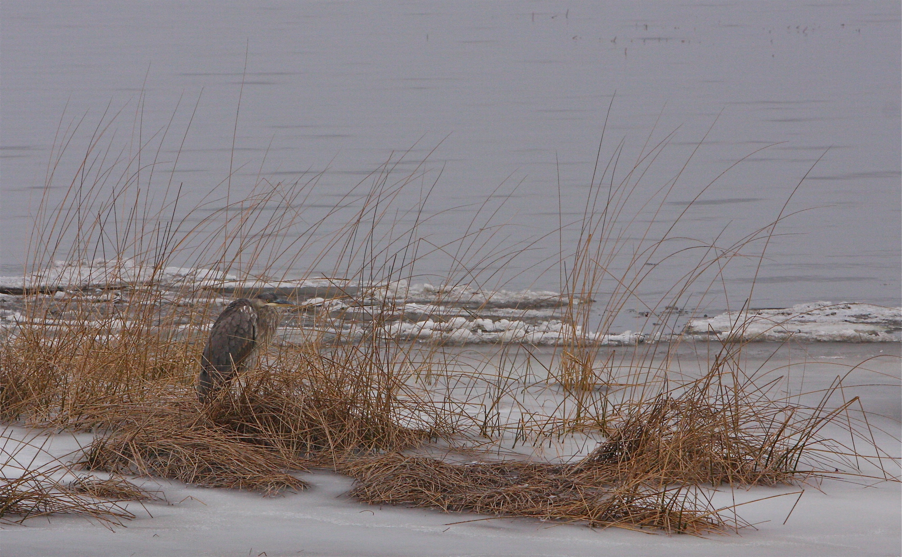 a very chilly looking great blue heron