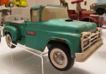 Pressed steel became a popular material for toy trucks starting during the 1930s industrial boom. Steel scrap was often used and pressed incredibly thin by huge machines. The sheets could then be cut and pressed into molds to make all sorts of shapes and objects that were strong and could be painted in bright colors. These pressed steel toys were more durable than wood and seemed more like the trucks they were made to represent. The idea caught on like wildfire among toy enthusiasts and new companies formed to take advantage of the markets created.