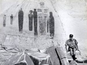 During that first visit I finally arrived at the Great Gallery very excited to see rock art I had studied in school years before but, until that time, had only seen photos of… When I arrived at the site I was shocked to discover that, by chance, I happened to know the steward who was on duty down in the remote canyon! The ranger, Craig Root, owned a ski school where I had worked the winter before my visit. Needless to say, after greeting him and discussing at length the gallery of amazing work, we invited him to join us for dinner at the canyon rim later that night. His was a lonely post and I think he enjoyed our company and antics that evening.