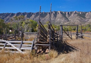 Ewing-Snell corral with Pryor Mountains in the background